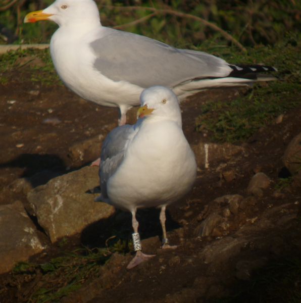 Saturday was a lovely quiet morning with sunshine. The high tide early in the morning concentrated the gulls in Chouet landfill, where I managed to record 53 of my colour ringed Lesser Black-backed Gulls - including three which were recorded for the first time this spring (one had been recorded in winter in Madrid, Spain and another in the autumn in Beira Litoral, Portugal). I enjoyed the opportunity to try out my new digiscope camera (Panasonic FS10) with good light and with the gulls at reasonably close range.